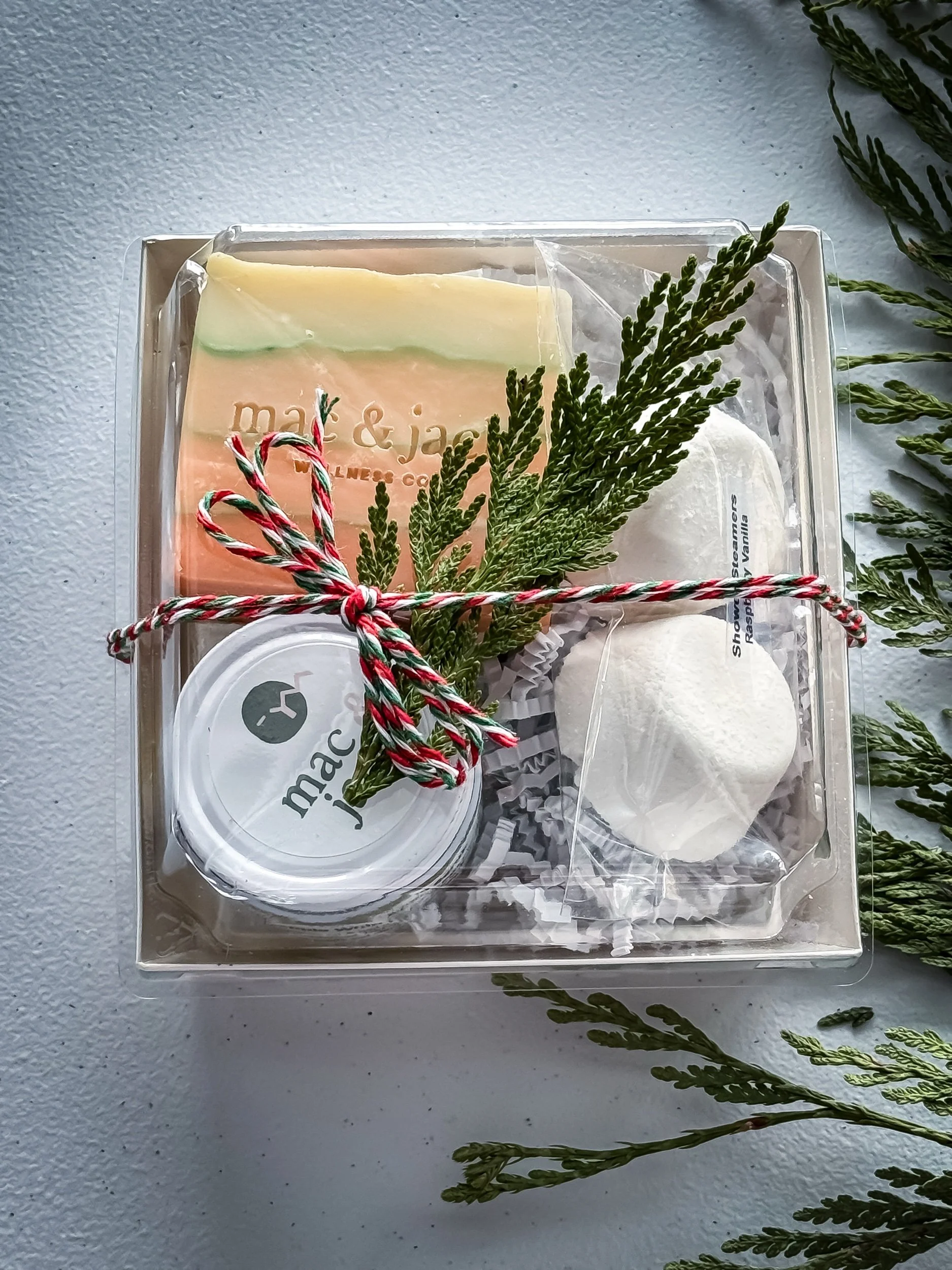 Gifts Categories: All Accessories & Tools Bath Bath Bombs Scrubs Soap All | Accessories & Tools | Bath | Bath Bombs | Scrubs | Soap | Balsam Fir Bubble Bath Powder Ornament $8.00 Detangle Hair Care Set $40.00 Only 2 available Let it Glow Facial Care Set $45.00 Only 1 available Grab bag 20 $20.00 Grab Bag 15 $15.00 Only 1 available Grab Bag 10 $10.00 Bath Lover’s Gift Set $35.00 Shower Lover’s Gift $30.00 Scrub Tub $20.00 Handmade Soap & Wash Cloth Gift Set $20.00 Mac & Jack Gift Card from $25.00